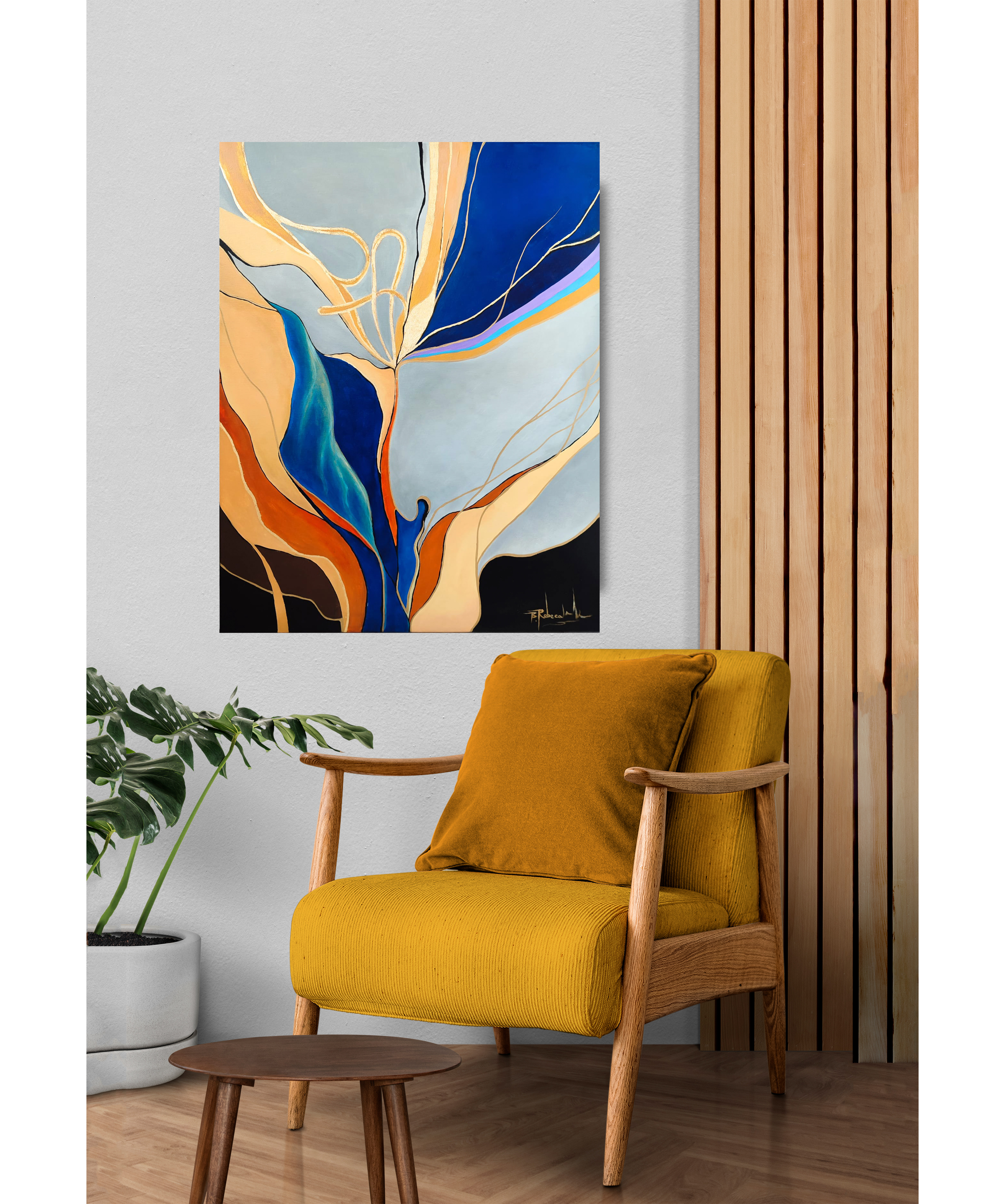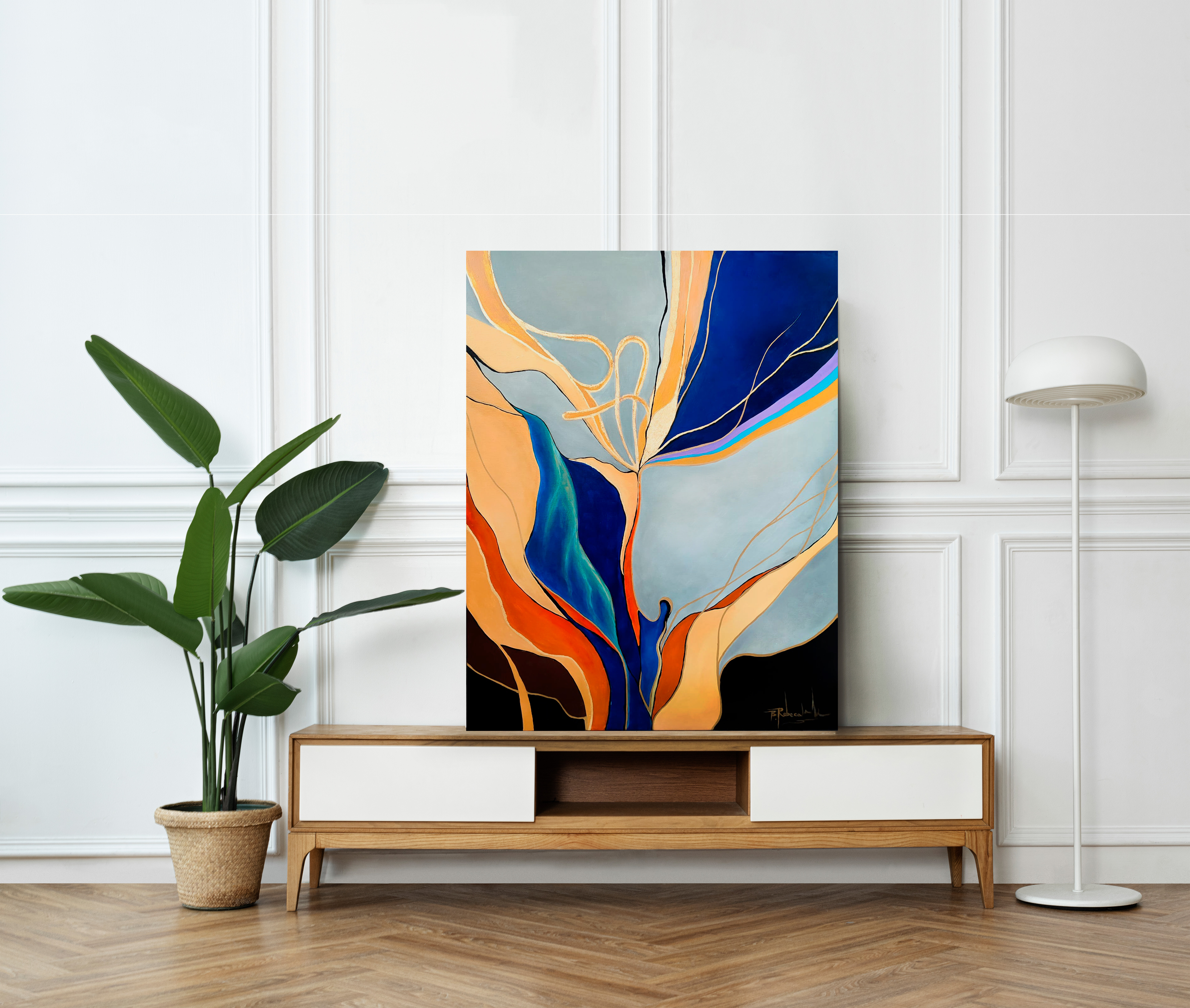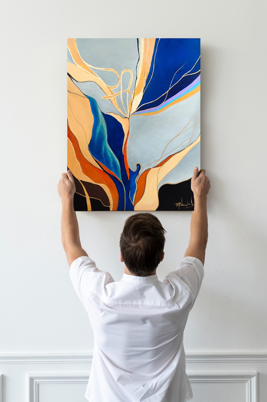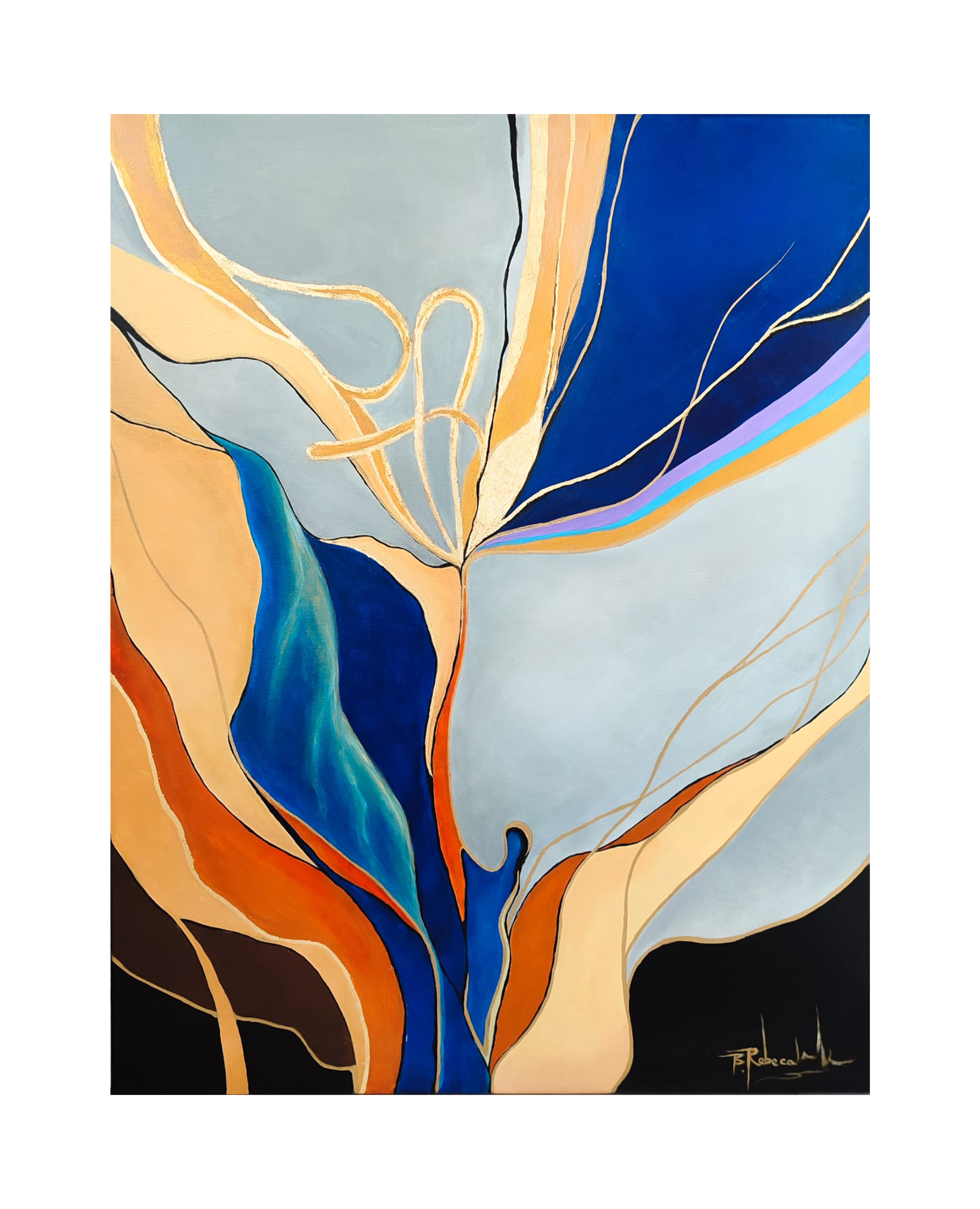 Tabloul " Flowers of pain" este o lucrare abstracta realizata cu vopsele pe baza acrilica, prezentand detalii evidentiate cu foita de aur. Este protejat de o pelicula de vernis ce confera totodata luciu si vibranta culorilor