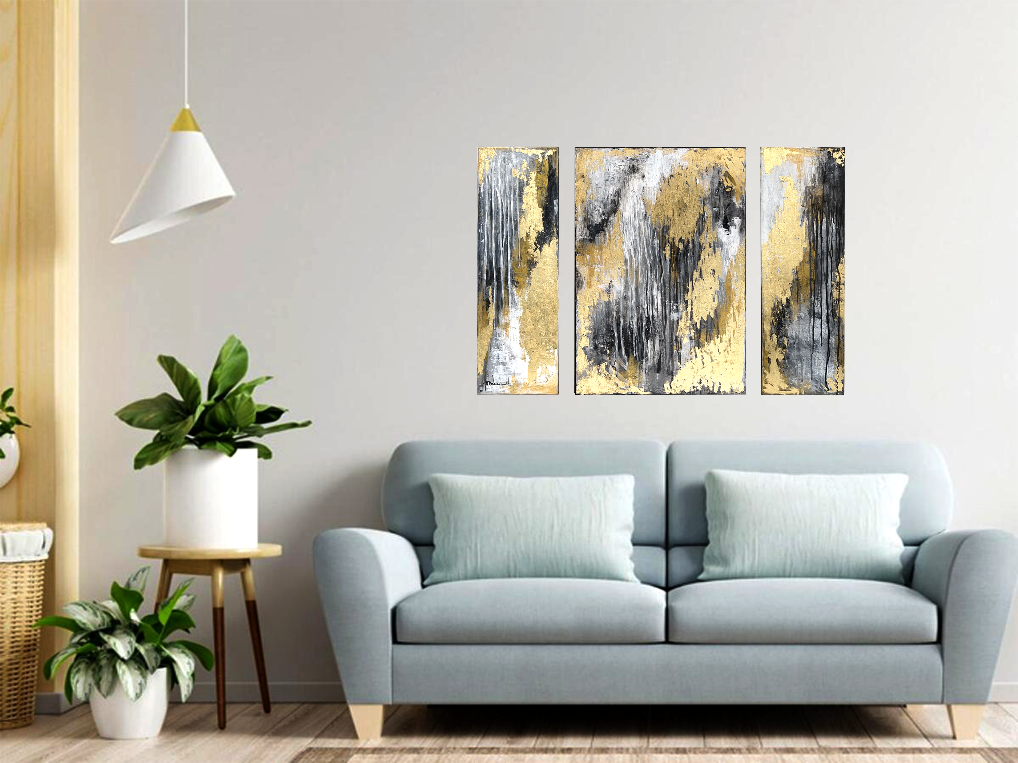 Tablourile sunt realizate cu vopsele acrilice de cea mai buna calitate, in pensula pe suport tip canvas, iar detaliile aurii ce confera un aspect luxuriant si extravagant incaperii dumneavoastra sunt realizate cu foita de aur aplicata.