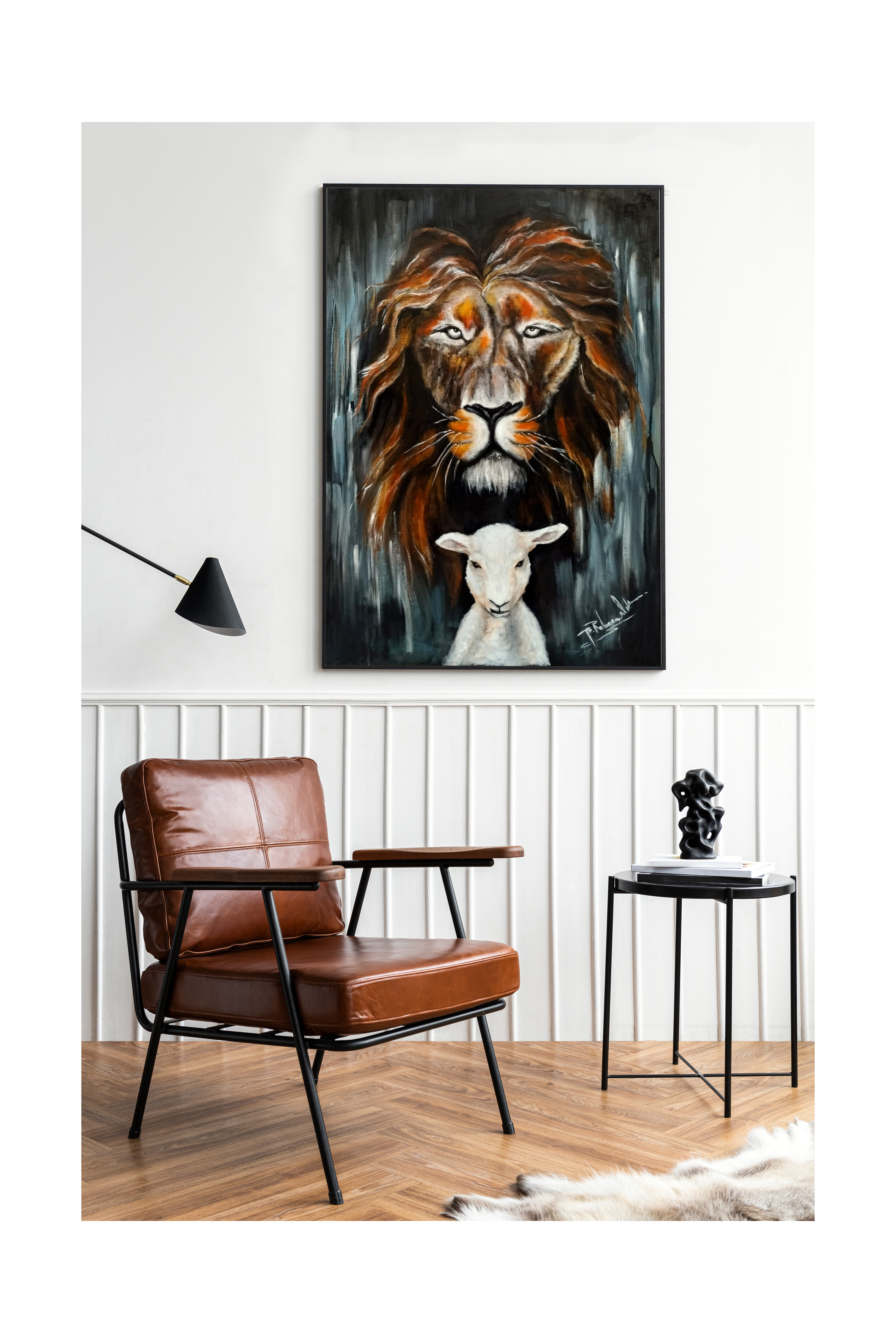 Tabloul confera incaperii o nota dramatica dar si abstracta totodata, astfel ca este potrivit pentru birou, living cat si holuri foarte mari.